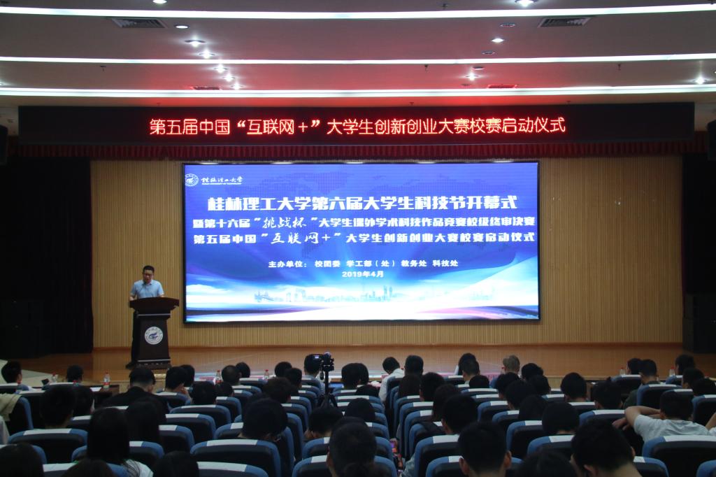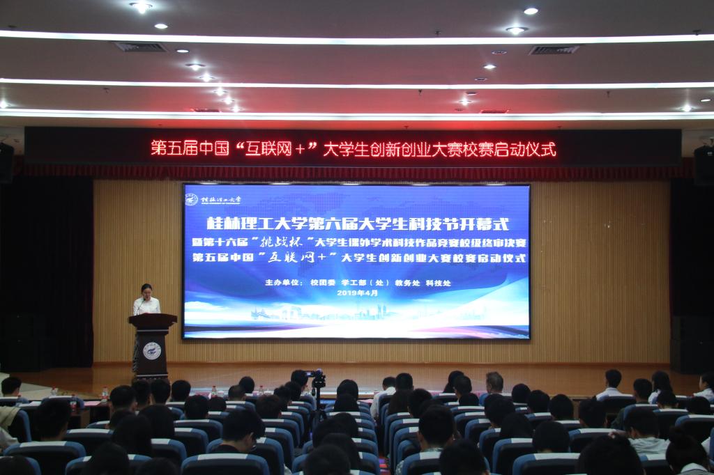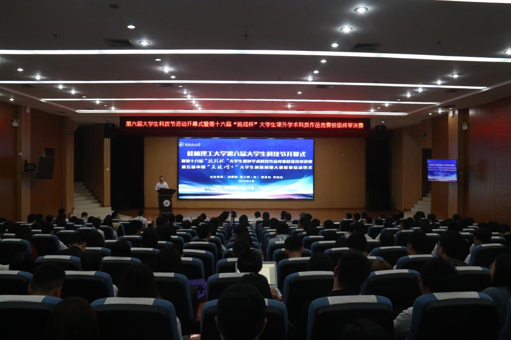 4月27日上午,第六届大学生科技节开幕式暨第十六届“挑战杯”大学生课外学术科技作品竞赛校级终审决赛、第五届中国“互联网+”大学生创新创业大赛校赛启动仪式在雁山校区顺利举行,学校副厅级调研员张劲松出席开幕式并致辞。beats365亚洲版、学工部(处)、教务处、科技处负责人,企业代表桂林坤鹤文化传播有限公司负责人、各二级学院党委副书记及团委书记,“挑战杯”与“互联网+”参赛师生代表300余人参加开幕式活动。