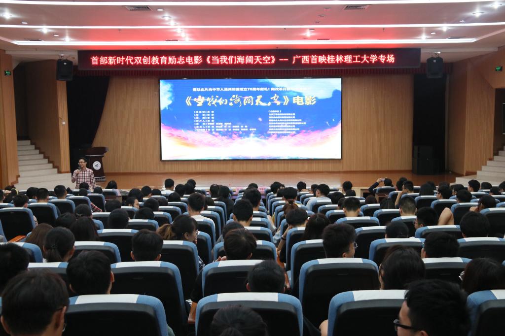 为贯彻落实全国教育大会精神,深入落实习近平总书记给中国“互联网+”大学生创新创业大赛“青年红色筑梦之旅”大学生的重要回信精神,激励更多学生了解“双创”、投身“双创”与“青年红色筑梦之旅”实践,培养造就更多的创新创业生力军。5月21日下午,首部新时代双创教育励志电影——《当我们海阔天空》广西首映式在我校雁山图书馆报告厅举行,学校300余名学生共同观看了此部电影,接受了一场青春勇立潮头、敢闯会创风暴的洗礼。