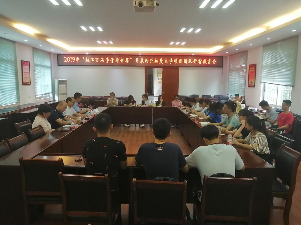 7月17日下午,2019年“桂工百名学子看世界”马来西亚团行前教育会于屏风校区大学生创新创业基地301会议室召开,学beats365亚洲版书记李雨、国际教育学院副院长张肖鹏出席会议,团队带队老师及团队全体同学参加行前教育会。