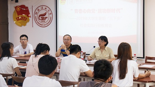 学生工作部(处)部(处)长张成龙老师就落实好此次社会实践活动的各项任务提出了三点要求:一是坚定理想信念,以此次社会实践为契机,深入学习贯彻习近平新时代中国特色社会主义思想和习近平总书记在纪念五四运动100周年大会上的重要讲话精神;二是深入基层、了解基层、体验基层,用专业知识助力精准扶贫、乡村振兴等各项事业;三是精心组织、确保安全,在社会实践中受教育、长才干。