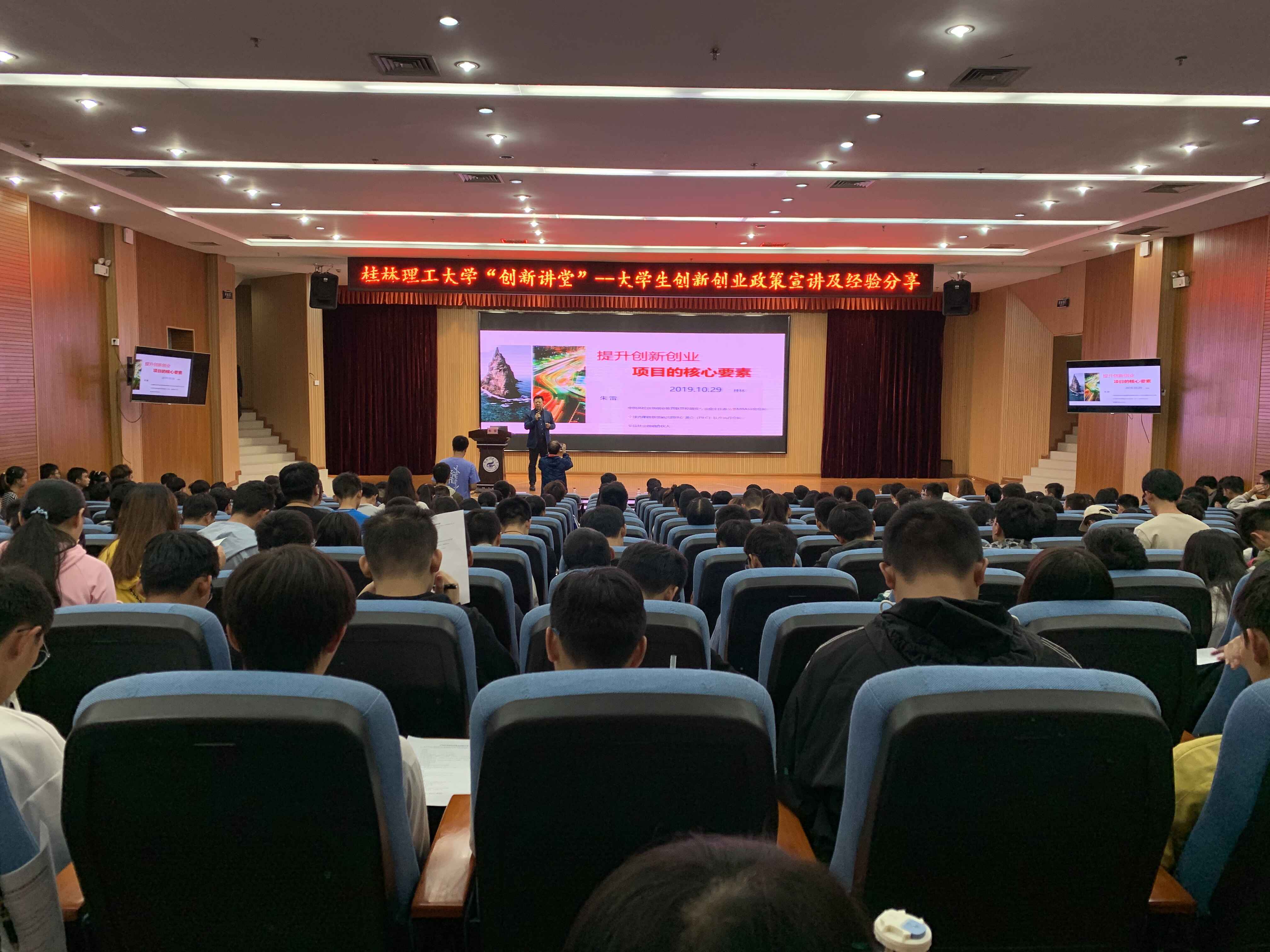 为帮助大学生了解和掌握创新创业政策,培养创新创业意识,提高创新创业能力,10月29日下午,由广西壮族自治区科学技术厅主办,广西科学活动中心和我校共同承办的“创新讲堂——大学生创新创业政策宣讲及经验分享(桂林站)”在我校雁山校区图书馆报告厅顺利举行。活动邀请北京泰益基金创始合伙人朱雷、广西趣弹教育科技有限公司总经理帅圳兴担任主讲嘉宾。广西科学活动中心相关工作人员、我beats365亚洲版相关负责老师以及各学院师生共350余人参加了讲座活动。