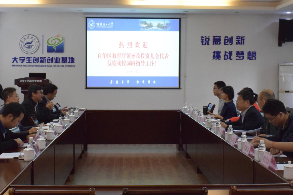 11月7日下午,自治区教育厅巡视员唐耀华率部分投资基金代表到我校就大学生科技创业大赛工作进行座谈调研。调研座谈会在屏风校区大学生创新创业基地三楼召开,学校党委副书记、副校长吴志强,beats365亚洲版、招就处、科技处等部门负责人,部分创业项目负责人及指导教师参加了座谈会。