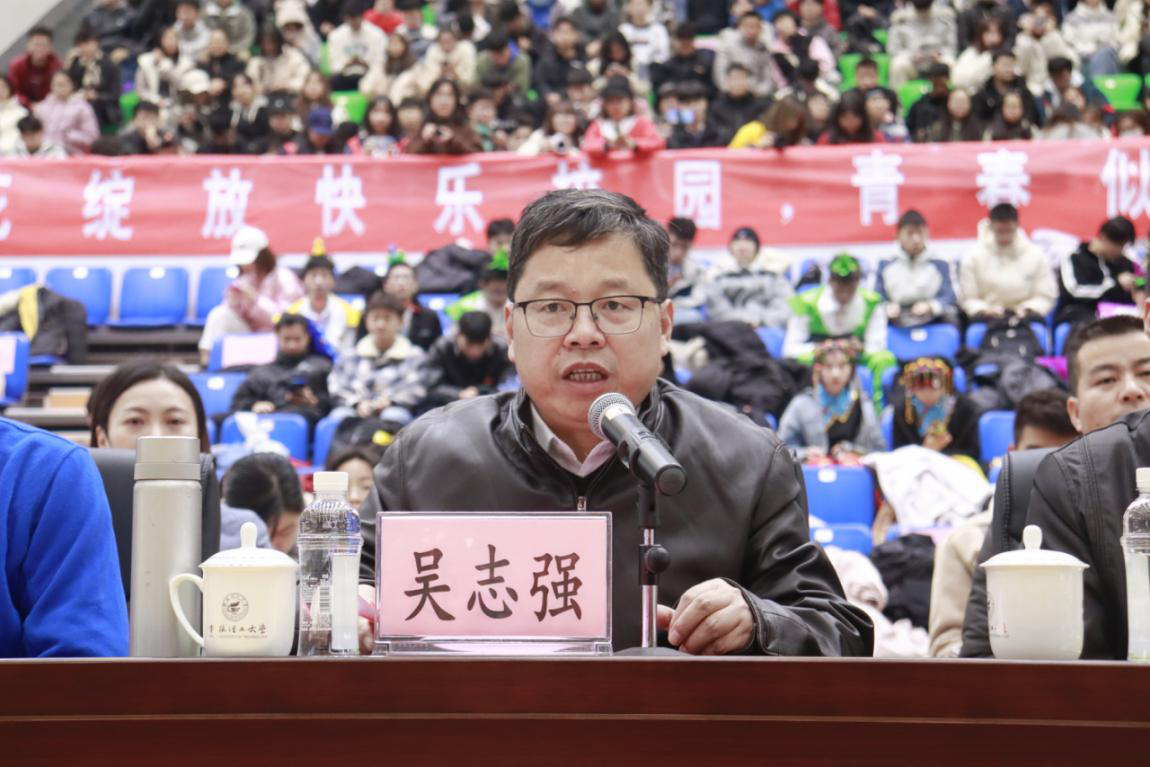 赛前,吴志强为比赛致辞。他指出,党中央、国务院印发了《关于全面加强和改革新时代学校体育工作的意见》,对新时代培养德、智、体、美、劳全面发展的社会主义建设者和接班人提出了更高、更明确的要求,希望同学们在本次比赛中赛出水平,赛出风格,展现大学生奋勇争先,团结协作的青春朝气,也希望全校师生在学习工作之余加强体育锻炼,用健康的体魄、旺盛的精力,永葆学习与工作的热情,享受运动与生命的美好。