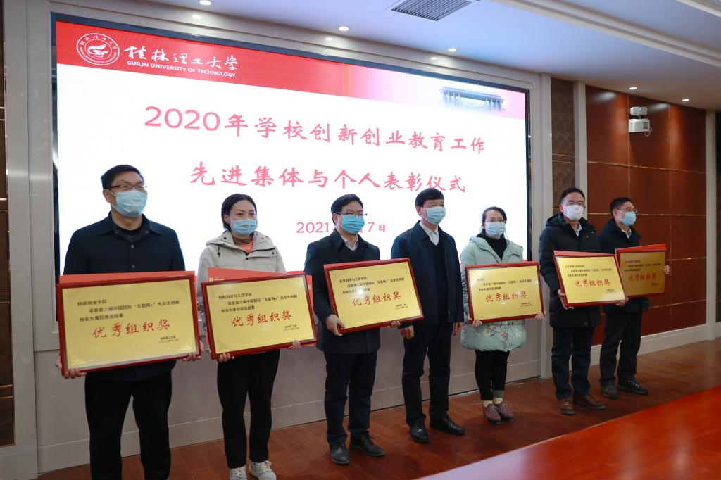 1月7日上午,学校在雁山校区15栋101综合会议室召开2020年创新创业教育工作总结表彰暨工作推进会。学校校长解庆林、党委副书记吴志强出席会议,副校长梁福沛主持会议,学校创新创业教育工作领导小组各组成单位相关负责人,研究生院、国际教育学院、现代教育技术中心、校友办等相关单位负责人,各二级学院院长、党委副书记、分管创新创业教育工作副院长、团委书记,指导教师及学生项目负责人代表参加会议。