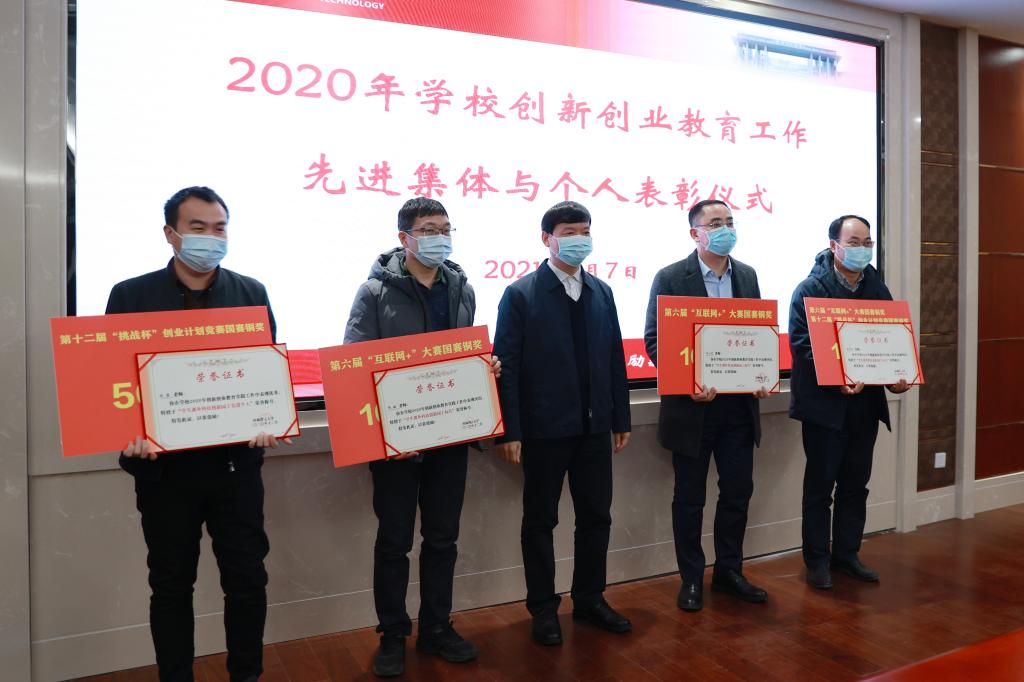 大会表彰了第六届中国国际“互联网+”大学生创新创业大赛和2020年“挑战杯”大学生创业计划竞赛获奖项目师生代表和优秀组织单位等。解庆林、吴志强为获表彰的先进集体和个人颁奖。优秀指导教师代表、商学院教师马小龙,优秀学生代表、信息科学与工程学院学生唐钲原和优秀组织单位代表材料科学与工程学院、土木与建筑工程学院分别作创新创业赛事指导、参赛经验以及组织工作的分享。