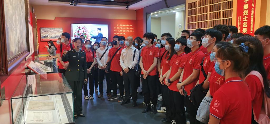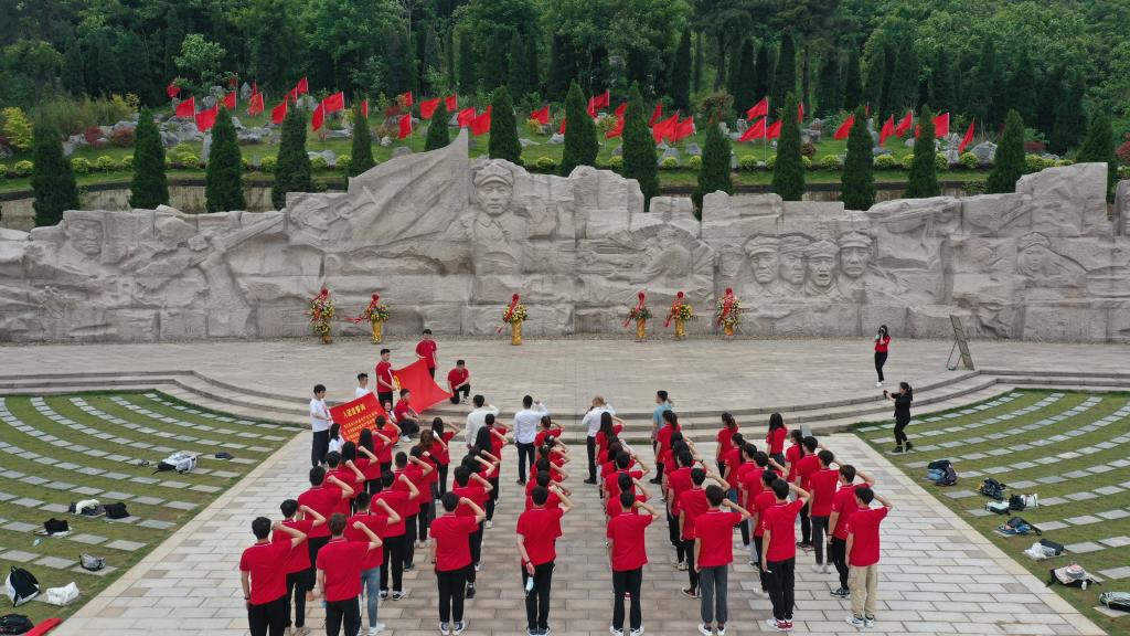 在纪念园凭吊广场,青年师生们深切缅怀红军烈士,向红军烈士敬献花篮,行鞠躬礼,表达对红军烈士崇高的敬意。李雨带领青年师生们重温入团誓词,铿锵恢宏的誓词,强烈震撼着在场的每一位团员青年。