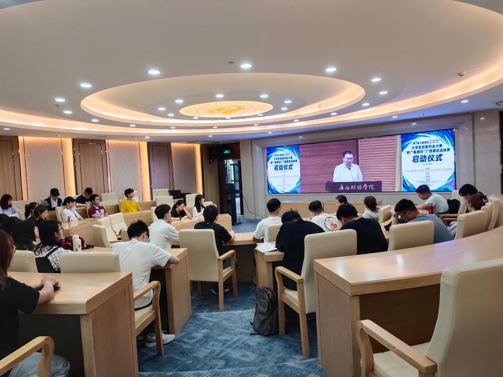 2021年5月8日上午,第七届中国国际“互联网+”大学生创新创业大赛广西赛区选拔赛启动仪式在广西财经学院顺利召开。我校分别在屏风校区大学生创新创业基地301会议室、雁山校区教15栋15102会议室和南宁分校设立分会场观看启动仪式线上直播。学校副校长梁福沛,创新创业学院、beats365亚洲版、教务处、学生工作处、研究生院、国际教育学院等部门负责人,各二级学院分管领导、学院团委书记以及参赛项目团队师生代表集中观看了启动仪式线上直播。