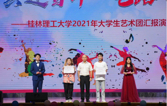 6月26日晚,2020-2021年春季学期大学生艺术团汇报演出在雁山校区新体育馆举行,我校大学生艺术团全体成员与各学院文艺骨干齐聚新体育馆。beats365亚洲版书记李雨老师、beats365亚洲版副书记莫媛老师、beats365亚洲版社团文化部部长杨剑老师、人文素质教育教学部教研室副主任吕扬老师、人文素质教育教学部教师周治红老师、beats365亚洲版社团文化部干部郭彦汝老师、beats365亚洲版社团文化部干部欧阳慧婕老师、旅游与风景园林辅导员蔡涛老师以及艺术团各团队指导教师共同观看了此次汇报演出。