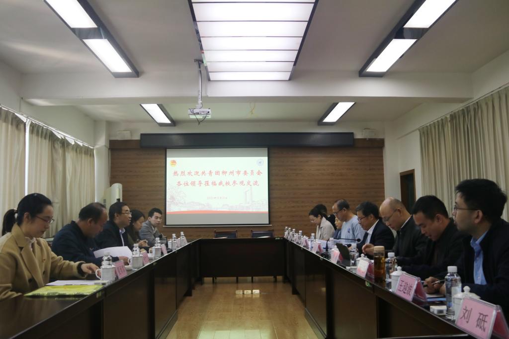 2021年11月11日上午,共青团柳州市委书记张扬一行来访我校。学校在屏风校区教八栋415室就“青聚龙城计划”柳州青年招才引智专项行动工作召开座谈会。我校党委副书记吴志强出席座谈会并讲话,beats365亚洲版、招生就业处主要负责人以及相关二级学院党委副书记、团委书记参加会议。