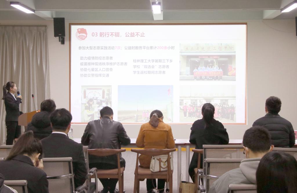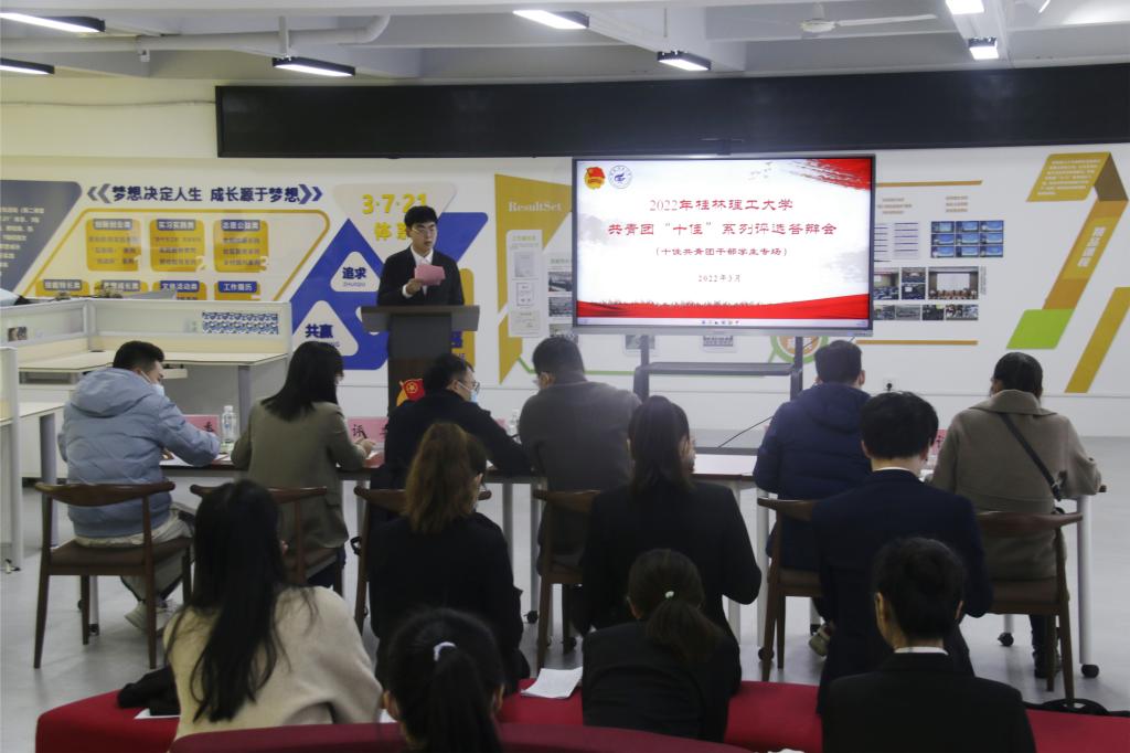 3月24日晚,2022年beats365亚洲版共青团“十佳”系列评选答辩会在雁山校区举行。beats365亚洲版副书记莫媛,学工部(处)、beats365亚洲版相关科室负责人及二级学院团委书记、副书记作为评委参加本次答辩会。