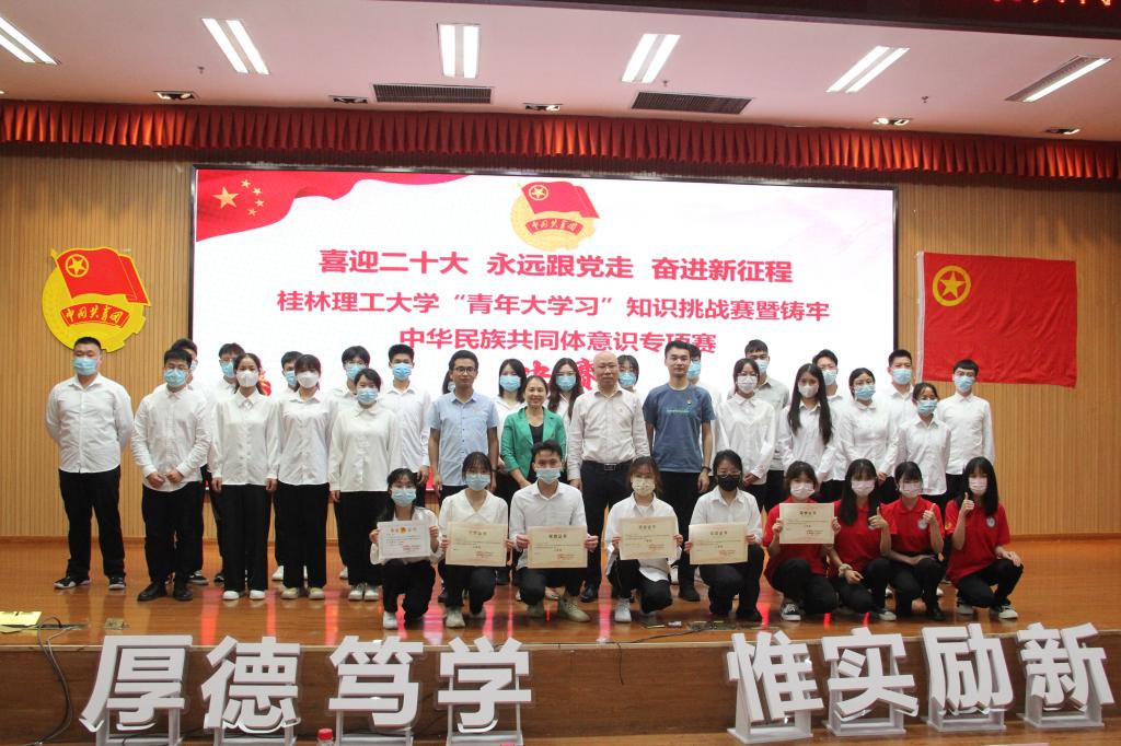 决赛设置必答题、抢答题、风险题等环节,题目内容涉及习近平总书记系列重要讲话精神、党史、团史、国情、民族团结和时事政治等知识。整场比赛气氛紧张激烈,参赛队员踊跃抢答、相互配合,现场掌声连连,整场比赛现场充满着浓郁的学习氛围。经过激烈的角逐,来自材料科学与工程学院的代表队伍荣获一等奖,来自马克思主义学院、信息科学与工程学院、地球科学学院的代表队伍荣获二等奖,来自土木与建筑工程学院、公共管理与传媒学院、外国语学院与旅游与风景园林学院的代表队伍荣获三等奖。