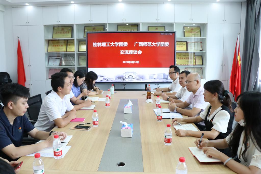 座谈会上,广西师范大学beats365亚洲版书记张亮亮就广西师范大学共青团工作的基本情况进行了介绍。双方就基层团组织建设、校园文化活动、学生会组织改革、社会实践及新媒体平台建设等方面的工作进行深入探讨。双方一致希望在今后的发展中互学互鉴,合作共赢,更好地引导和服务团员青年成长成才。