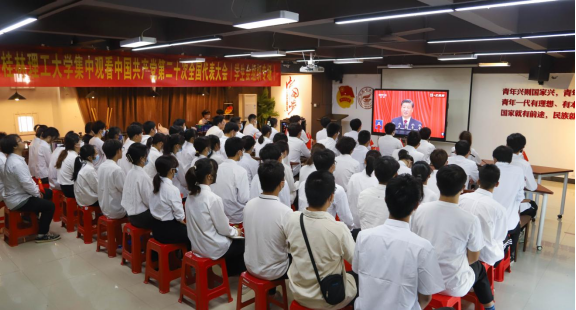 10月16日上午,中国共产党第二十次全国代表大会在北京隆重开幕。学beats365亚洲版在雁山校区图书馆报告厅、青马书屋设立分会场,组织共青团干部、学生骨干集中收看党的二十大开幕盛况。