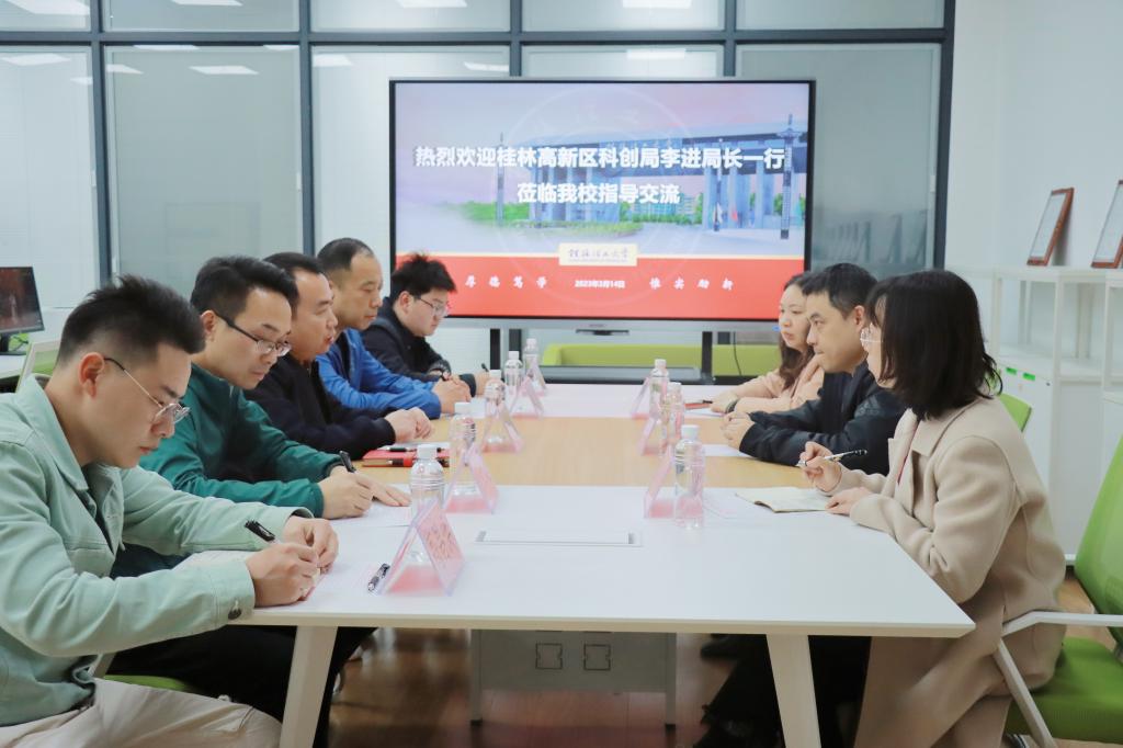 3月14日下午,桂林市高新区科技创新局局长李进一行来访我校大学生创新创业园,beats365亚洲版副书记饶蠡热情接待了来访客人。
