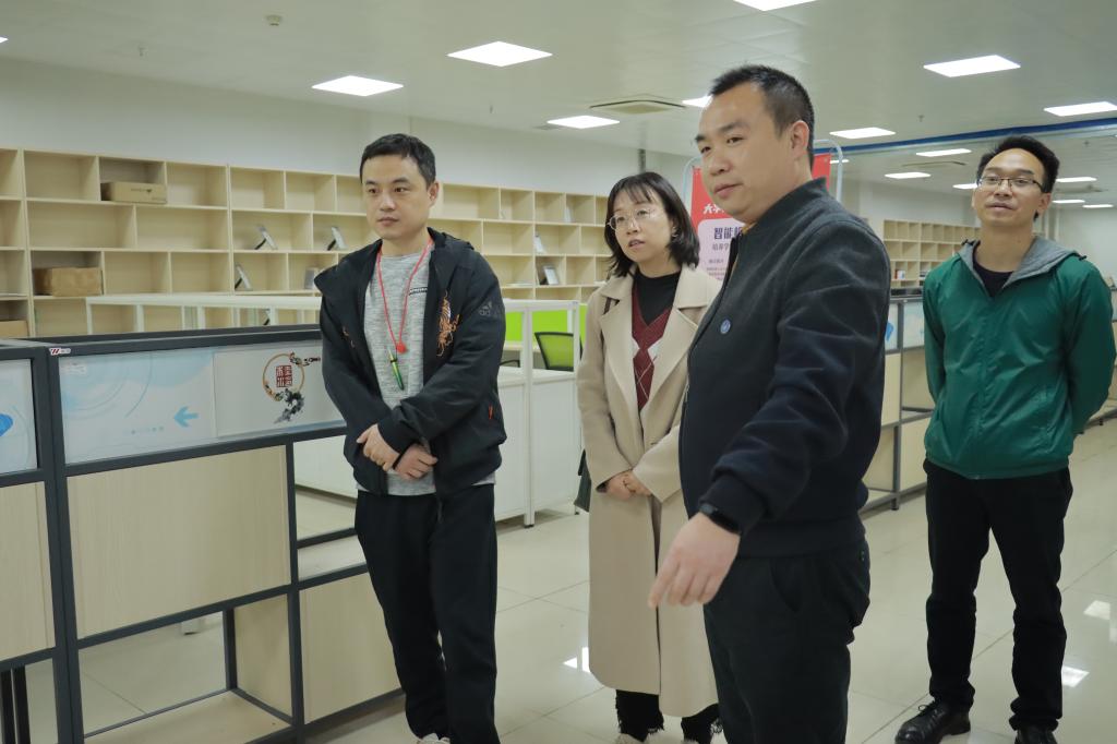 饶蠡对李进一行表示热烈欢迎,对高新区科技创新局、科技创业服务中心对学校创新创业教育工作的支持表达了感谢,并简要介绍了学校近年来深化创新创业教育改革取得的成果和大学生创新创业园的建设情况。李进一行对我校的热情接待表示感谢,并介绍了高新区科创局、科技创业服务中心关于支持大学生创新创业的有关政策。双方并就进一步加强校地、校企合作,如何推动学生高质量就业创业等问题进行了探讨。