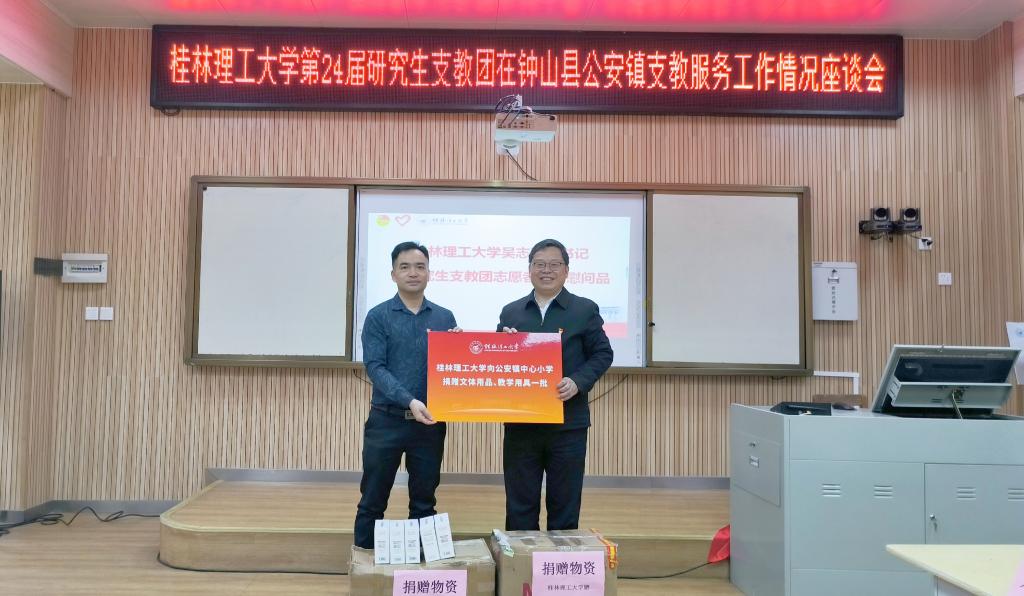 座谈会上,校地双方领导为“beats365亚洲版研究生支教团支教学校”揭牌,吴志强代表学校向公安镇中心小学和里太完小捐赠了文体用品,为研究生支教团志愿者送上了慰问品。