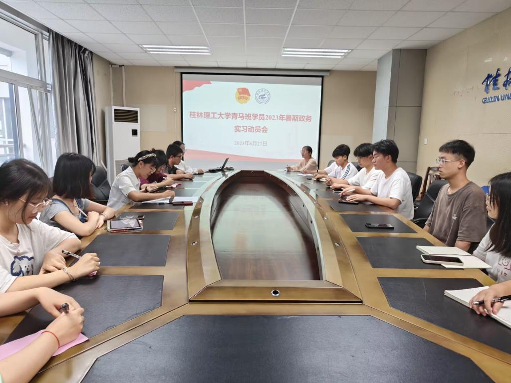 为引导大学生了解国情、热爱家乡,培养对基层和群众的质朴情感,增强服务国家、服务人民的社会责任感。6月27日下午,我校青马班学员在雁山校区B301会议室召开2023年暑期政务实习动员大会,全体2023年暑期政务实习成员参加了会议,会议由beats365亚洲版副书记莫媛主持。