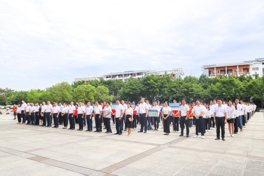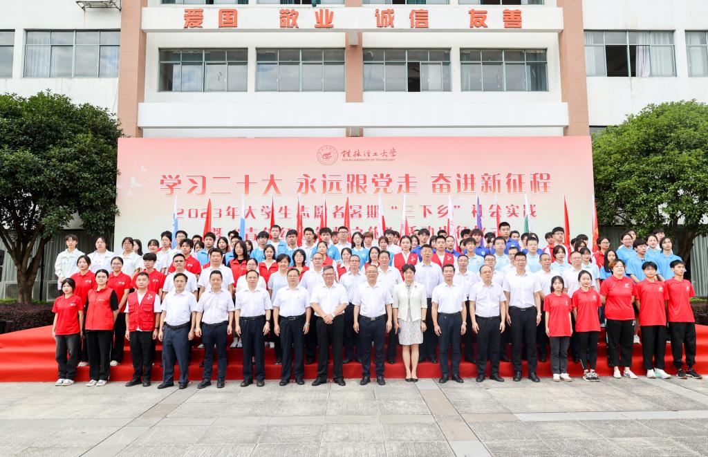 7月6日上午,学校在雁山校区教三栋广场举行“学习二十大 永远跟党走 奋进新征程”——2023年大学生志愿者暑期“三下乡”社会实践暨“青年红色筑梦之旅”活动出征仪式。全体在家校领导、校党委常委出席出征仪式。相关职能部门主要负责人,各学院党委书记、分管学生工作党委副书记、团委书记、学校社会实践立项团队指导老师和同学共400余人参加出征仪式。出征仪式由学校党委副书记吴志强主持。