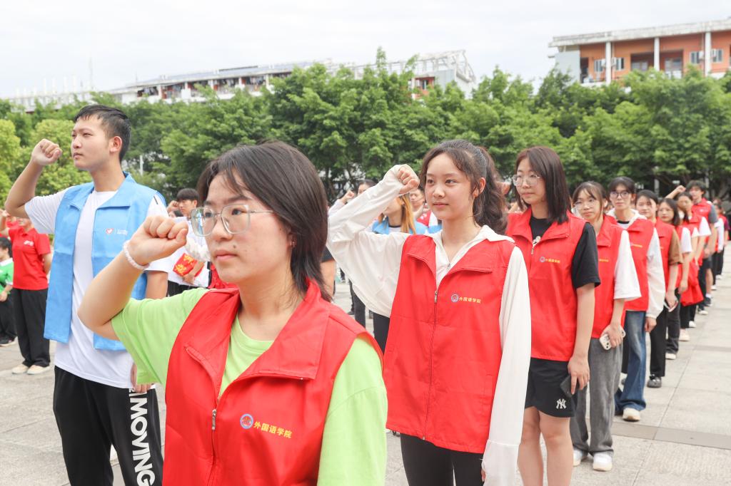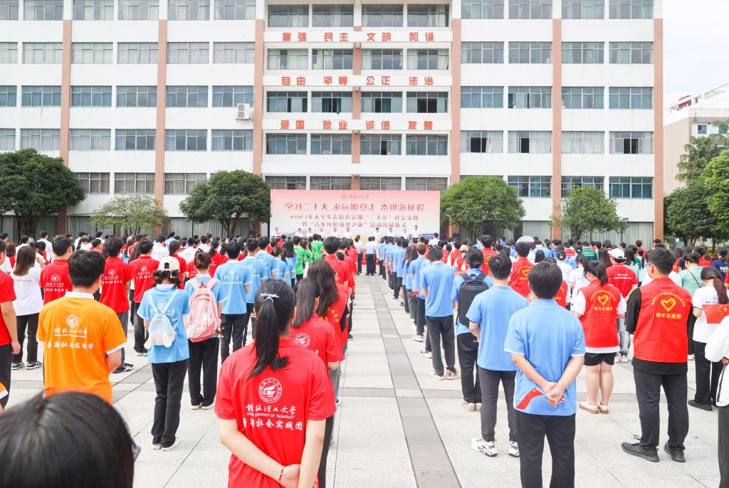 学校党委书记邓军宣布我校2023年大学生志愿者暑期“三下乡”社会实践暨“青年红色筑梦之旅”活动正式出征