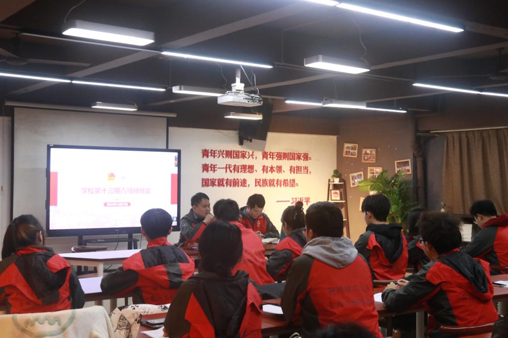 会上,林泳兵老师组织青马班学员进行自我介绍并竞选班委,并带领青马班学员对“青马工程”培训班相关文件展开学习。