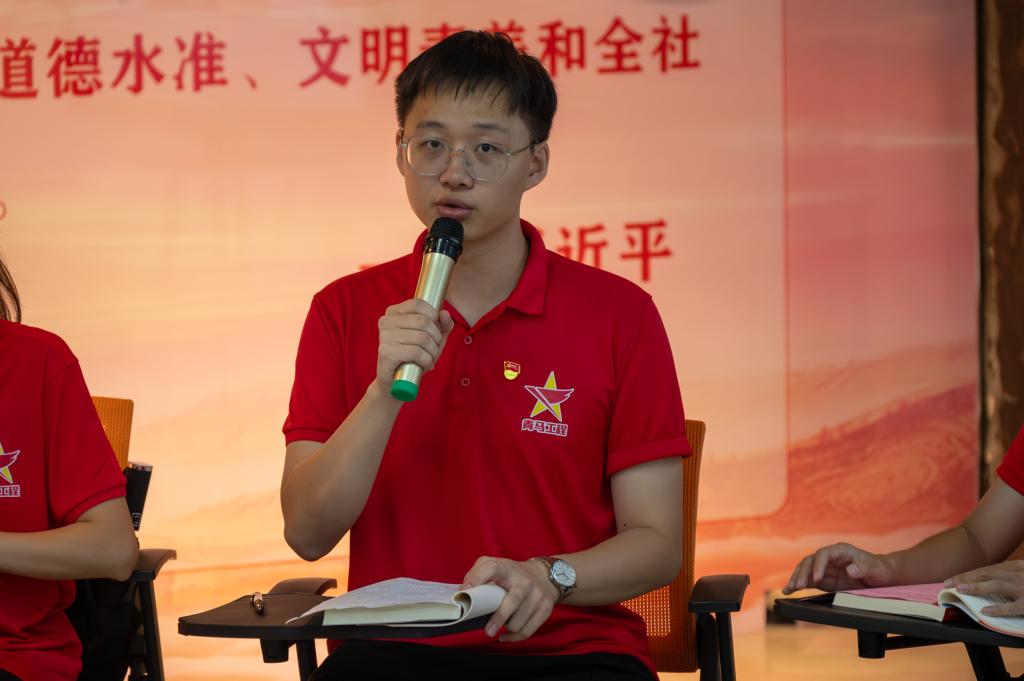 活动中,马克思主义学院思政课教师、党委副书记马彬彬对《习近平与大学生朋友们》第一、二卷的主要内容进行全面解读,鼓励同学们在研读中深刻领会习近平总书记薪火相传的“青年观”、念兹在兹的“青年情”和厚望重托的“青年志”。地球科学学院团委书记吕思慧结合工作实际就做好《习近平与大学生朋友们》第一、二卷学习宣传工作做了分享发言,提出了深刻理解内涵、把握宣传方向,紧密结合实际、开展特色活动,注重学习实效、突出实际行动的学习宣传工作思考。学校“青马工程”培训班成员代表王志程、学生骨干代表梁永发、青年学生代表杜谨玲等3位学生代表,围绕学习习近平总书记重要寄语精神,结合自身学习经历分享了阅读《习近平与大学生朋友们》第一、第二卷部分篇章的心得体会。