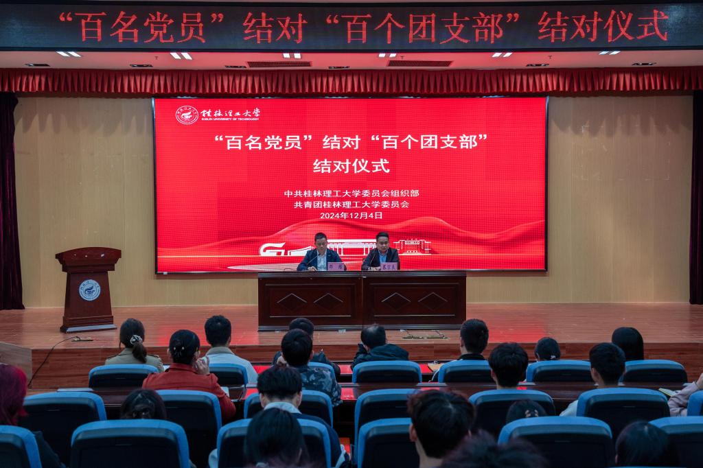 为深入贯彻新时代党的建设总要求,坚持党建引领团建,持续增强共青团的组织力、引领力、服务力及大局贡献度,12月4日下午,2024年“百名党员”结对“百个团支部”结对仪式在雁山校区图书馆报告厅顺利开展。学校党委组织部副部长、人才办副主任邓炼,学beats365亚洲版副书记慕宗良,各学院团委书记、副书记以及结对学生党员、团支部书记200余人参加了仪式。