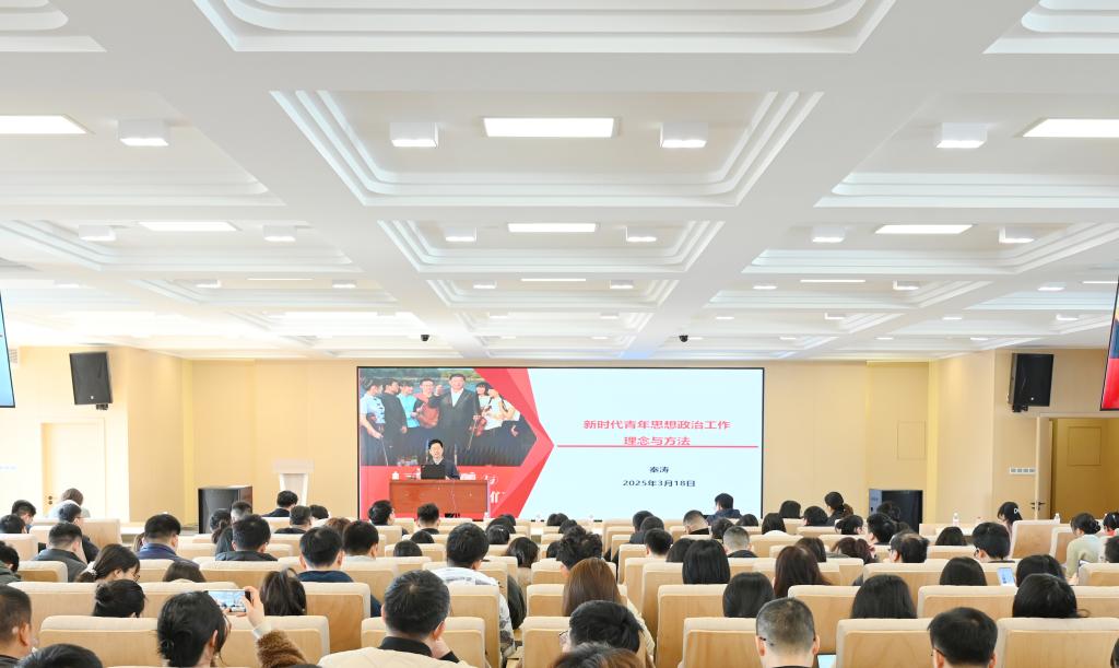 会上,秦涛教授以习近平同志《论党的青年工作》的生动故事为脉络,从“新时代青年的主要特点”“新时代青年思政工作的理念”“新时代青年思政工作的方法”三个层面深入剖析了新时代青年“心理韧性不足、集体主义观念淡薄、思想困惑较多、价值取向多元”等特征画像,系统阐释了"要真不要装、要导不要哄、要行不要论"的三大工作理念,创新提出了“掌握金钥匙、用好传家宝、做好知心人、把握关键词、用好大课堂、提高引领力”六维工作方法。他指出,共青团干部要以习近平总书记“自找苦吃”的实践精神为标杆,用马克思主义真理之光照亮青年思想迷雾,在工作中既要坚持“解决思想问题与解决实际问题相结合”的优良传统,更要善用《习近平与大学生朋友们》等生动教材,激励青年在服务国家需求的实践中扣好人生第一粒扣子,真正把习近平新时代中国特色社会主义思想转化为引领青年成长成才的生动实践,成长为有理想、敢担当、能吃苦、肯奋斗的时代新人。