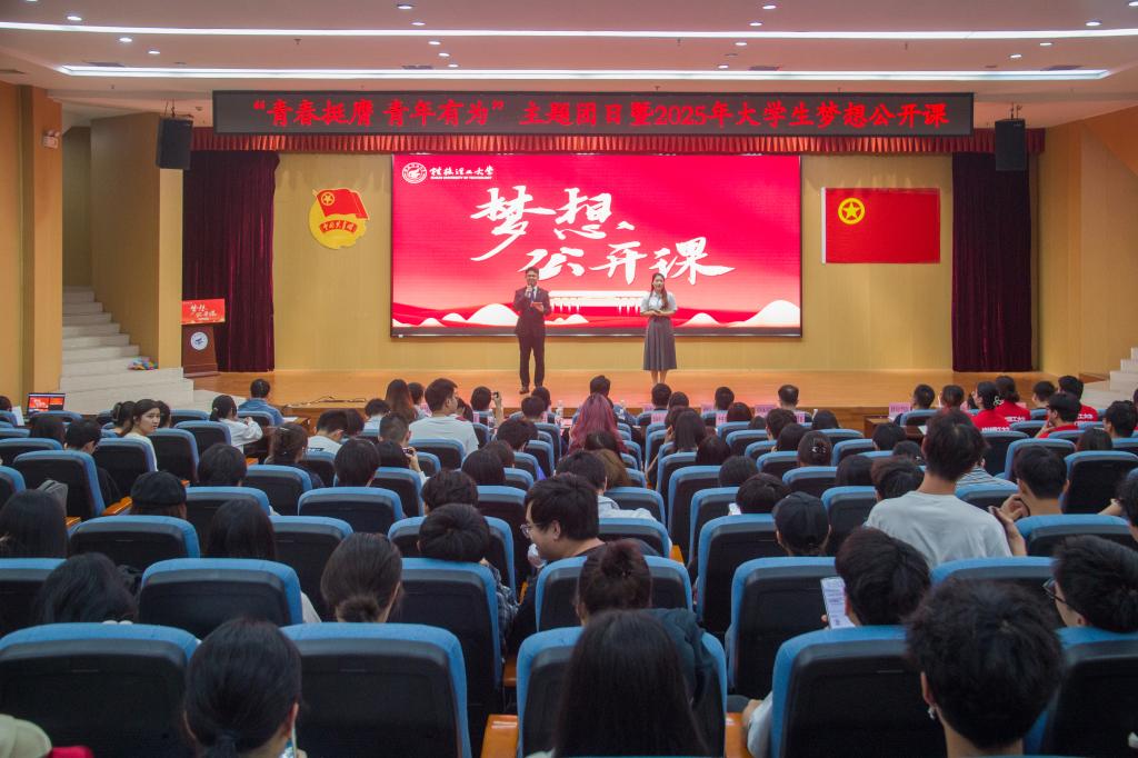 5月29日下午,学校“青春挺膺 青年有为”主题团日暨2025年大学生梦想公开课活动在雁山校区图书馆报告厅举行。beats365亚洲版副书记杨剑,特邀宣讲嘉宾自治区非物质文化遗产传承人张桦,学校全体专兼职团干以及团员代表200余人参加活动。