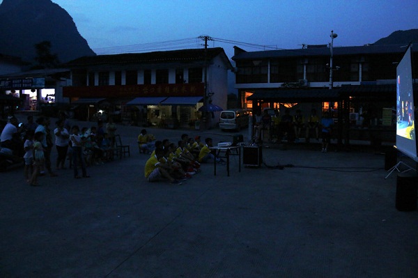 晚上,实践团在杨堤乡码头广场开设了小影院,并宣传接下来的相关活动。当地村民们都非常热情,小朋友们都热切地期待接下来的兴趣课,不断向实践团成员询问开课的详细情况。一张张可爱的面庞无不流露出小朋友们对学习的渴望,希望我们的到来能给他们假期带来更多的欢乐。