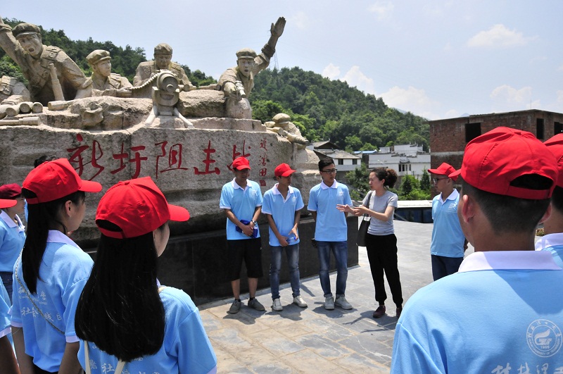 为坚定社会主义核心价值观,深入学习习近平总书记系列重要讲话精神,提升大学生的爱国热情,7月9日早,来自各学院的28名优秀学子组成的 “青春中国梦,红色灌阳情”暑期社会实践团队踏上了追寻红色印记之路。