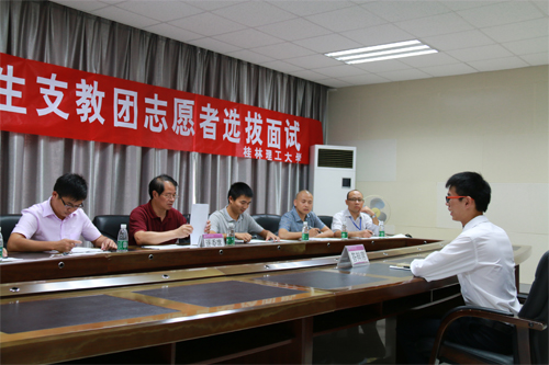 9月24日,我校第十八届西部计划研究生支教团志愿者招募选拔面试工作在雁山校区行知楼B301会议室举行。支教团面试评委由beats365亚洲版、学工处、教务处、招就处等部门负责人担任。