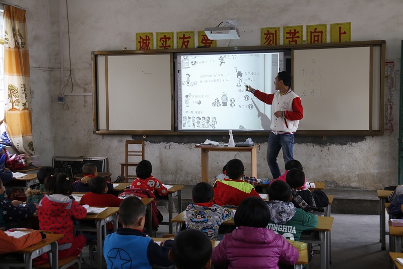 图为我校支教团成员白宇航在课堂上授课