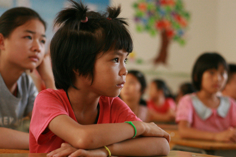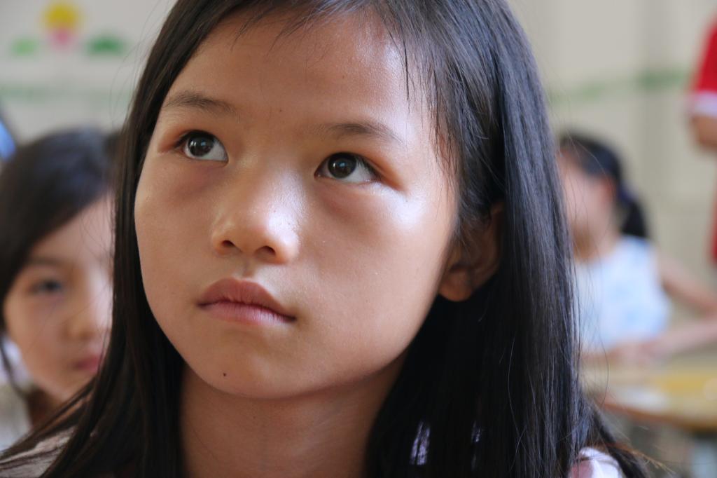 当时志愿者在课堂上讲到了关与理想和未来,她微微抬起的头颅望着老师,在思考着自己的路在何方,小女孩的眼神中透露着对未来的偏执与不屈。