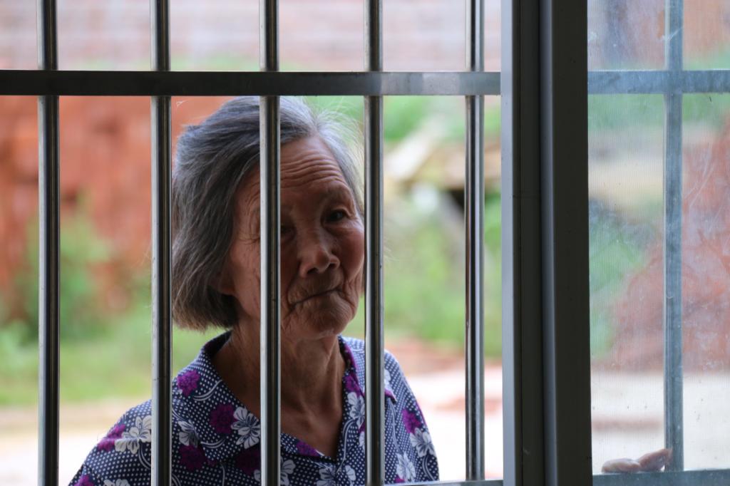 老奶奶静静的在窗外望着,当志愿者跟她聊天时,她十分开心的说“我是来看看我孙儿的,你看,坐在第一排就是我孙儿。”志愿者走开后,窗外的老奶奶还时不时的往教室里张望认真折纸的孙子。