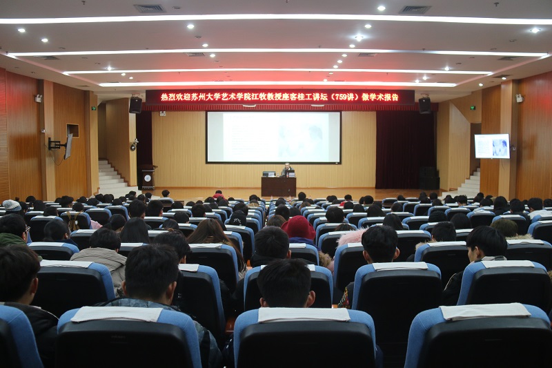 2018年1月5日晚,beats365亚洲版艺术学院有幸邀请到苏州大学艺术学院江牧教授于雁山校区图书馆报告厅为我院学生做题为《安全视野下的人类设计》的学术报告。此次报告会由学院副院长刘坚主持,学院师生积极到场聆听。