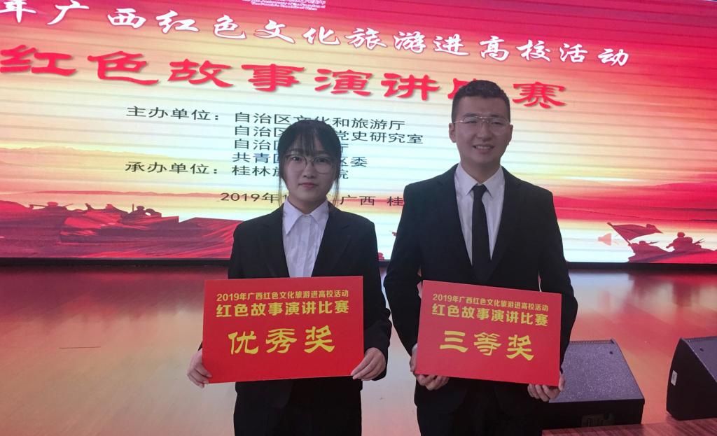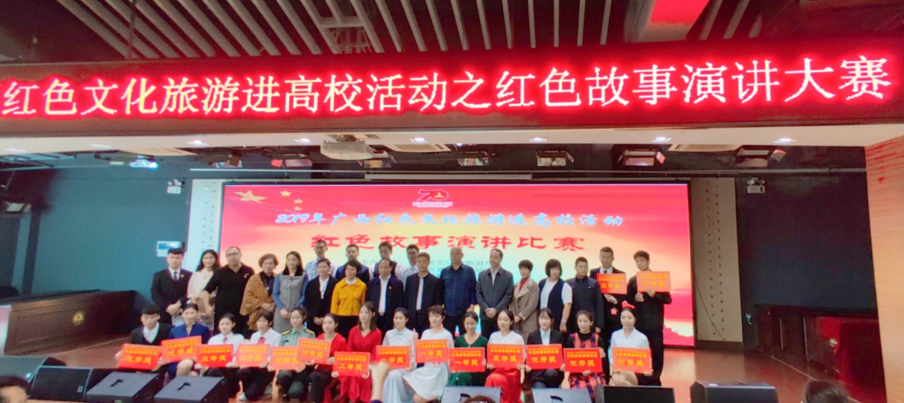 为深入学习党的十九大精神,贯彻落实习近平总书记关于“缅怀革命先烈,传承红色基因”重要指示精神,唱响主旋律,凝聚正能量,自治区文化和旅游厅、自治区党委党史研究室、自治区教育厅、共青团广西区委联合开展2019年广西红色文化旅游进高校系列活动。10月30日,在桂林旅游学院多功能报告厅成功举办红色故事演讲比赛。