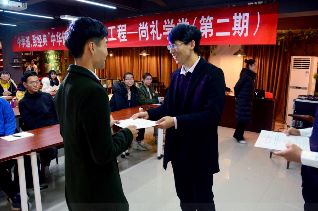 本期尚礼学堂分为生命之礼、师生之礼、古代成人礼和古代婚礼四讲。老师用温和的语言与细致的内容为学员们讲解了中国古代礼仪的博大精深,使学员们认识和了解到了四种古代礼仪所包括的种类和其所蕴含的深刻涵义。此外,老师通过视频的形式让学员们更直观的感受古代礼仪。学员们积极参与课堂互动,以礼相会,亲身体验了礼仪之美。课程结束后,老师亲自为每一位学员颁发了结业证书,鼓励学员们学礼仪之文化,做礼仪之人。