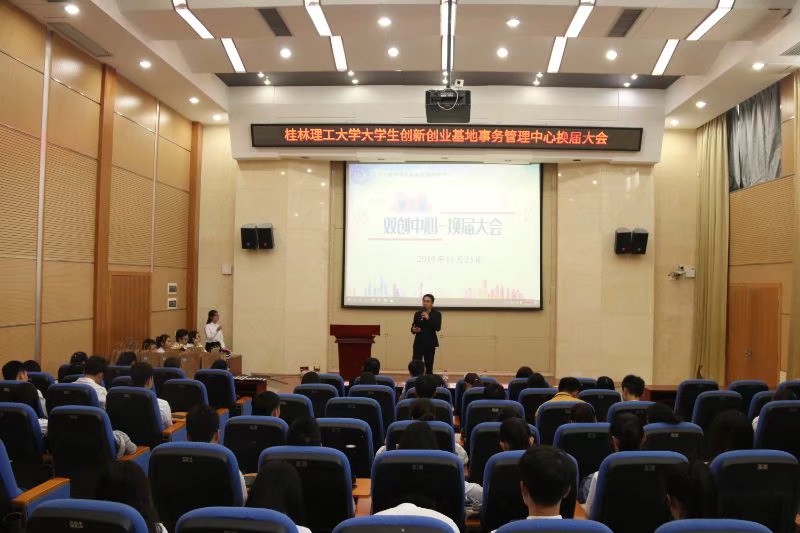 2019年11月23日下午,大学生创新创业基地事务管理中心(以下简称:双创中心)换届大会在雁山校区十二栋报告厅顺利召开,团委科技实践部部长、双创中心指导老师唐红兵以及双创中心全体成员参与了本次大会。