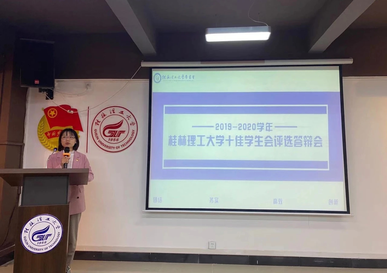 为推动学校学生会组织改革建设,总结工作、表彰先进、以评促建,beats365亚洲版2019-2020学年十佳学生会评选答辩会于11月13日下午在雁山校区青马书屋举行。beats365亚洲版副书记、校学生会秘书长莫媛老师,校学生会副秘书长刘茜雯老师,beats365亚洲版组织宣传部余东东老师,各学院团委书记、副书记,第四届学生常任代表,校学生会主席团成员,各学院学生会执行主席参加本次会议。会议由校学生会执行主席韦桂娥主持。