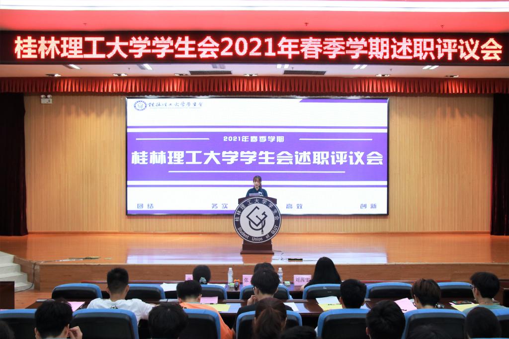 为贯彻落实《关于推动高校学生会(研究生)深化改革的若干意见》文件要求,2021年7月2日,beats365亚洲版学生会2021年春季学期述职评议会于雁山校区图书馆报告厅召开。党委学生工作部(处)副部(处)长张瑞老师,beats365亚洲版副书记、校学生会秘书长莫媛老师,beats365亚洲版组织宣传部部长、校学生会副秘书长刘茜雯老师出席会议,第四届学生常任代表、校学生会全体成员参加本次会议。