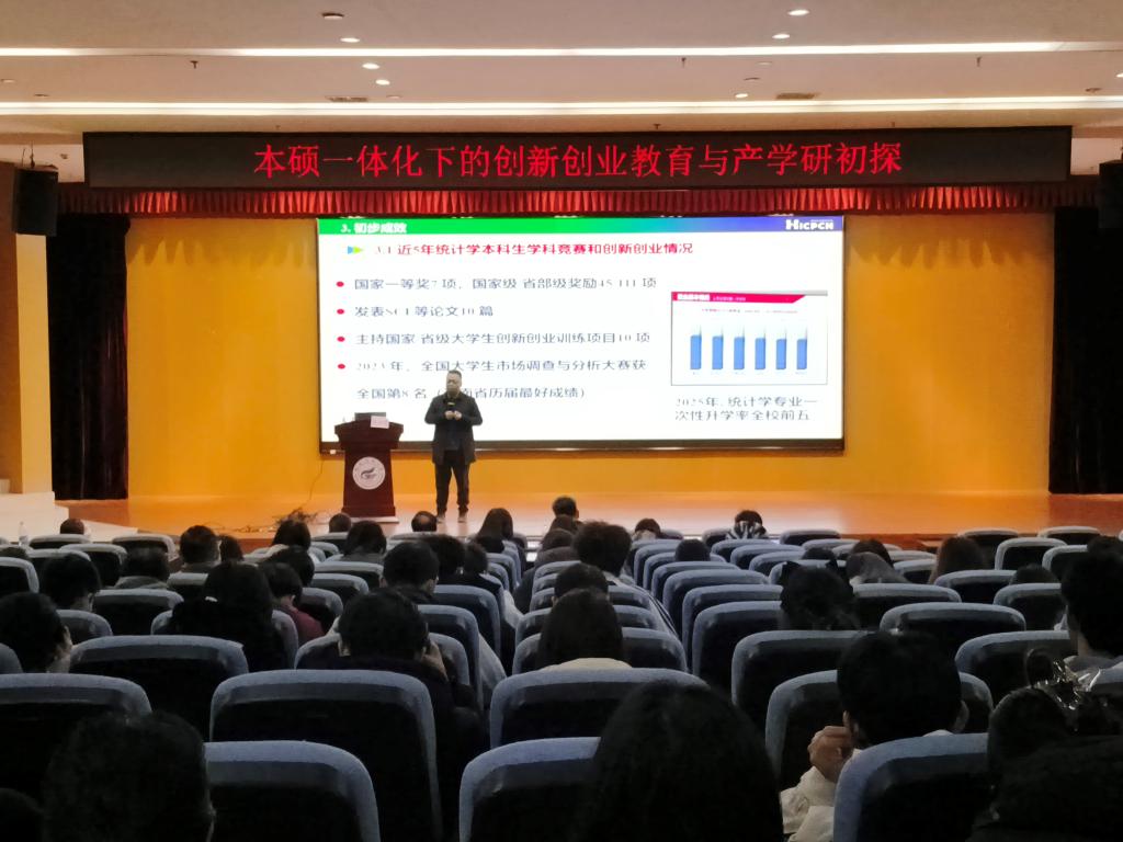 会上,周杰明教授以团队经验和在湖南师范大学统计学探索出的经验,指出数学与统计专业本硕一体化培养体系,应立足学科优势,将数理建模、数据分析等核心课程与创新创业实践有机结合,强化实践教学。还从细处着手,强调学生应注意实习与学习时间的合理安排,提高表达能力,提高学习与实习质量。周杰明教授还强调,应进一步加强与企业、科研院所的合作,共建实习实践基地与联合实验室,注重实践,推动学生科研成果向市场转化。同时,开设创新创业实训课程,邀请行业专家、优秀校友开展专题讲座,指导学生参与数学建模竞赛、统计分析创新大赛等高水平赛事。