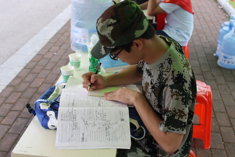 军训,从白里透红到黑的可爱,从新奇到疲倦,再到坚持,经历的不仅是肌肤之蜕变,更是意志的打磨和自信的树立。骄阳当空,四连的男儿流汗不掉队;微风斜雨,十八连的巾帼军姿正飒爽。轻伤不下火线,请求坚持是因为他的同学还在踢正步,是由于他的战友正在喊口号,你听,“逢敌亮剑,势比青天,横刀立马,唯我四连”,地学院的男生们豪情万丈。你再听,“激情似火,升华自我,巾帼十八,意气风发”,地学院的姑娘们拼搏向前。即使只能跟训,他们也会用自己的方式来并肩奋斗,依旧按时出操、甘当连队后勤、场边积极备考等。他们是地球科学学院的新鲜血液,他们能吃苦,耐磨练,肯上进,勤奋斗,他们是将把青春融入祖国山河的好儿女。