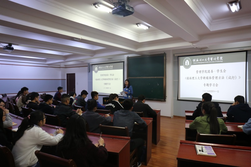 为进一步强化学生的意识形态教育,深入学习、领会我校党委近日印发的《beats365亚洲版新媒体管理方法(试行)》文件精神,4月11日下午,管理学院在7311会议室召开了团委·学生会《beats365亚洲版新媒体管理方法(试行)》专题学习会。管理学院团委·学生会书记处、主席团以及团委信息部、学生会新闻部全体成员参加会议,管理学院团委副书记曾丽萍老师主持会议。