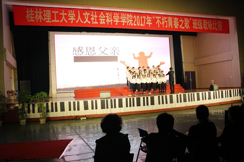 人文社会科学学院学生会文艺部以别开生面的舞蹈——《青花瓷》拉开了比赛序幕。行政管理16-1班,一首铿锵有力的《强军战歌》响彻在每一位青年的耳畔,将那一颗颗年轻的心震动不已。随后,《天籁之爱》《映山红》《国家》《大中国》等一首首歌曲代表着青春活力和“五四”情怀,唱出了人文学子一颗颗跳动的赤子之心。据悉,本次比赛共有十八个班级队伍参赛,每个班级都在合唱的基础上注入情景剧、诗歌朗诵、舞蹈以及手语等多种艺术表现形式,使得每个班级都各具特色。首首动听的歌声和观众的掌声此起彼伏,不断将比赛推上高潮。