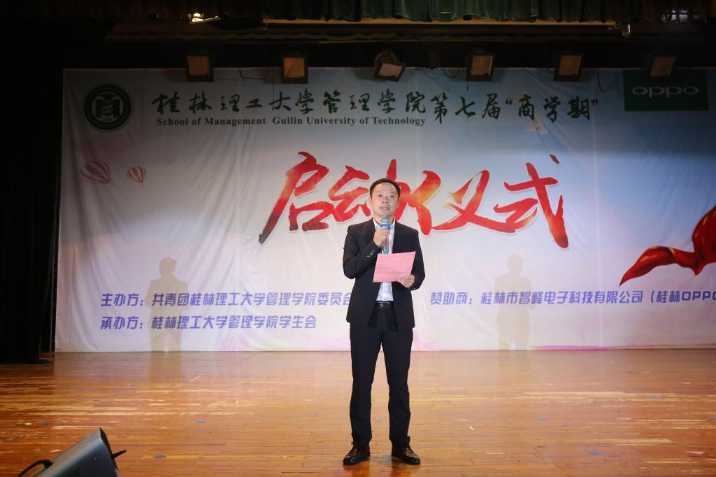 4月15日晚,管理学院第七届“商学期”系列活动启动仪式在屏风校区南礼堂隆重举行。学校学工处处长唐壮东、管理学院党委书记周章明、学校招生就业处副处长迟国东,学校学工处副处长代武社,学beats365亚洲版副书记潘思伊、管理学院党委副书记张瑞、学beats365亚洲版办公室主任邓炼、各学院团委书记、管理学院各专业教研室主任、专业老师以及全体学工老师参加了启动仪式。