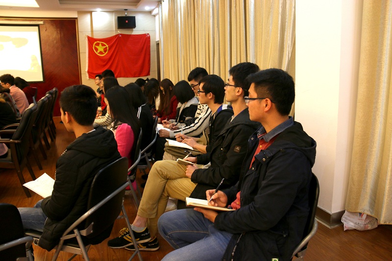 会上,陈琳老师向同学们传达了有关共青团中央关于在全团集中开展 “学习总书记讲话,做合格共青团员”教育实践通知精神,希望学生骨干能够将文件精神融合到活动中去,做好“领头羊”工作。紧接着,汪晟副书记发表讲话,他向同学们介绍本次“一学一做”学习教育的背景:一是继“群众路线”“三严三实”“两学一做”的思路推进,二是中央巡视组对团中央的巡视,三是习近平总书记近年来对广大青年殷切期望,四是习近平总书记系列重要讲话的重要性。同时,汪晟书记要求学生骨干 “学到实处,做到实处”、“学”“做”结合、“学”“做”互动,加强思想引领;激发团员热情,做合格、优秀团员。另外,他希望各学生骨干要自觉践行社会主义核心价值观,在青年中发挥模范带头作用。