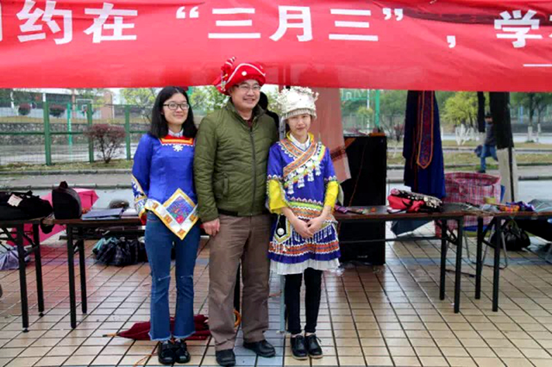 同学们展示民族服饰