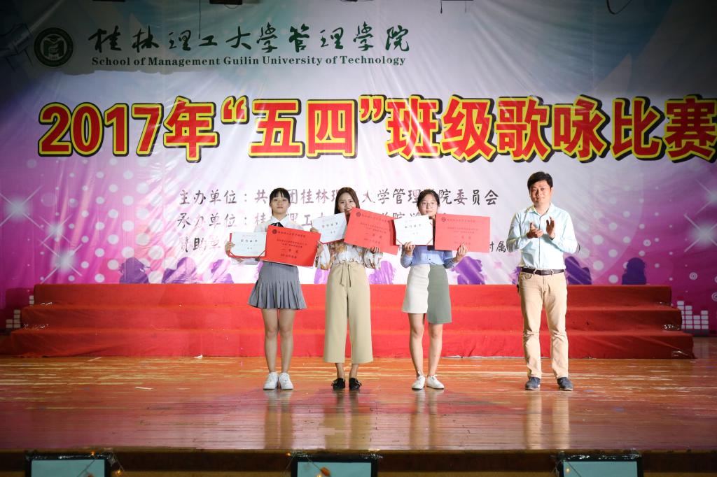 为扎实推进共青团“一学一做”教育实践,积极响应管理学院开展“学在桂工,唱响五四”主题活动的号召,体现当代青年学生热爱祖国、追求进步的良好精神风貌,管理学院分别于4月8日和4月9日在屏风校区南礼堂举办了管理学院2017年“五四”班级歌咏比赛。管理学院党委副书记张瑞、学工组组长沈菲菲、团委副书记曾丽萍、学工组副组长王敏奇以及各年级辅导员参加活动并担任比赛评委。