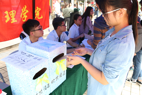 时光漫长,人在变物在变,亲笔书信就会变得弥足珍贵。为了帮助同学们传达感情,发酵埋藏在同学们心中珍贵的情谊不,让青春留有遗憾,理学院于4月7日、8日在 “数理节”设点宣传过程中顺利举办“时光慢递”活动。