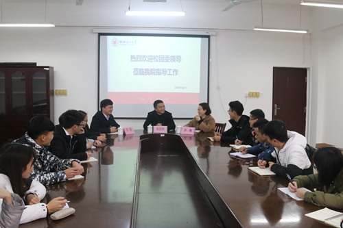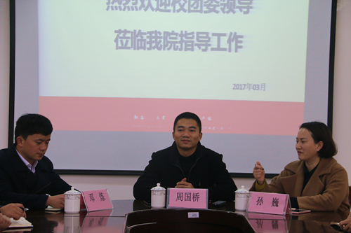 3月7日下午,学beats365亚洲版书记周国桥、办公室主任邓炼来理学院调研指导工作,并在理学院07115会议室进召开了对校院两级团委、校学生会等组织工作意见座谈会。理学院党委副书记孙巍及学院各学生组织主要学生干部参加了本次座谈会。